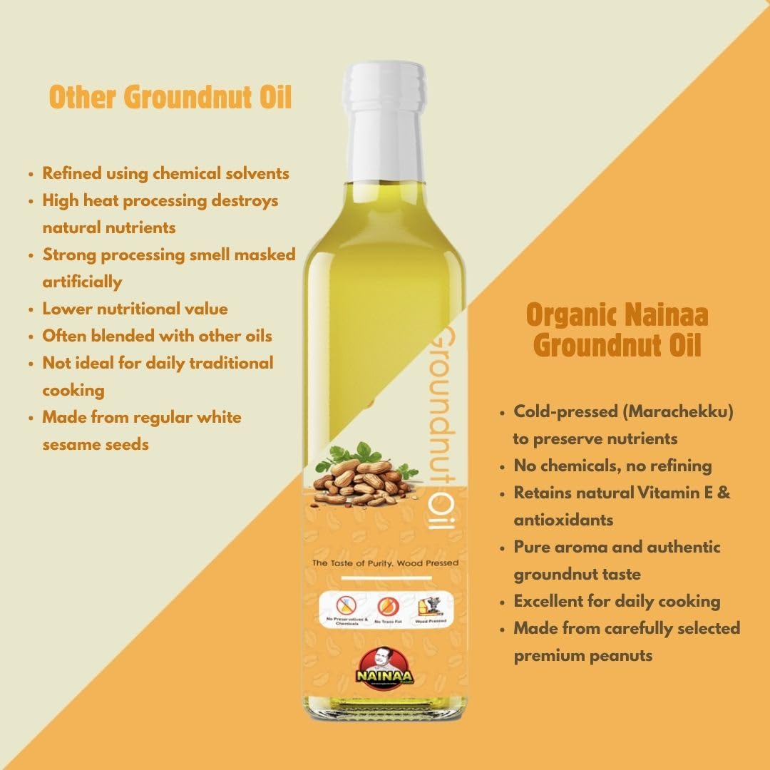 Nainaa Foods Wood Cold Pressed Groundnut Oil | Natural | Chemical-Free | Cooking Oil – 500 ml
